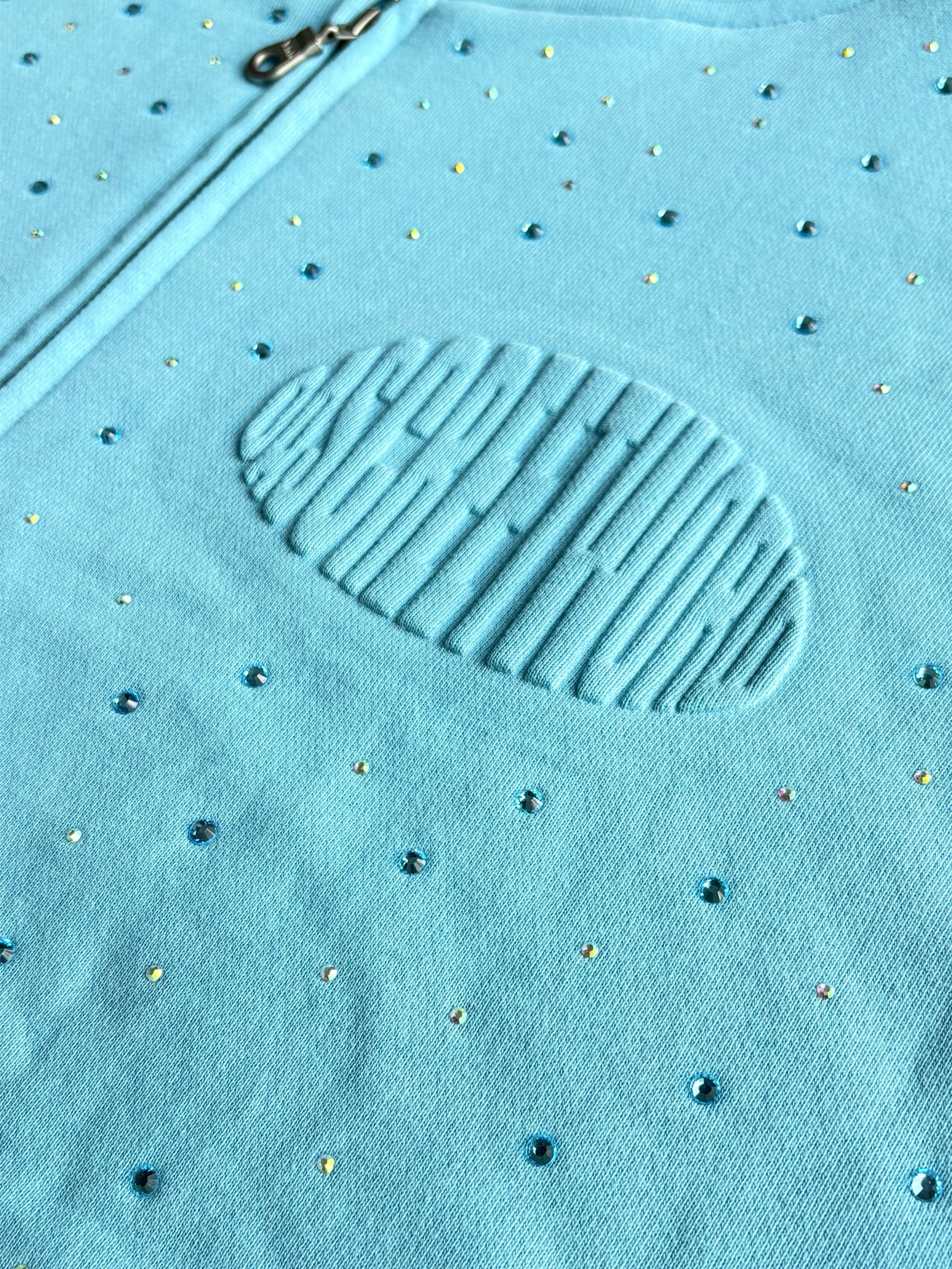 • Design: Soft 100% cotton fleece with a striking all-over crystal/red/blue rhinestone pattern.